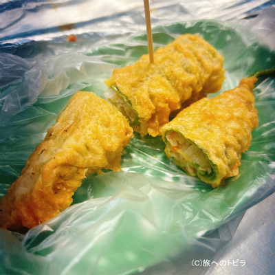 そこにひき肉やチャプチェなどを詰めて天ぷらにする料理です。