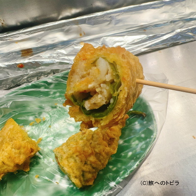ピーマンの肉詰めを天ぷらにしたような感じでしょうか。