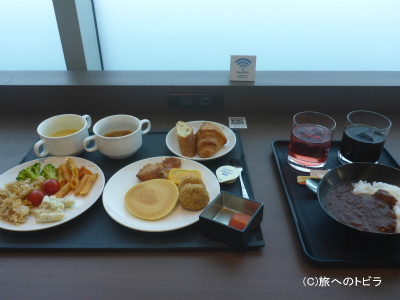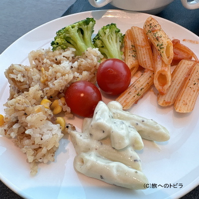 が、食事が置いてあるエリアはちょっと狭め