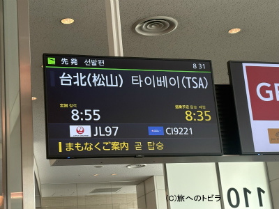 ほぼ予定通りに台北松山空港に到着しました。