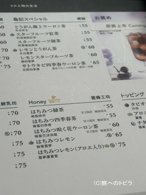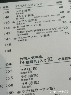 蜜桃烏龍(ピーチウーロン茶) 70元(約320円)