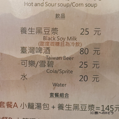 小籠湯包+養生黒豆漿 145元(約680円)